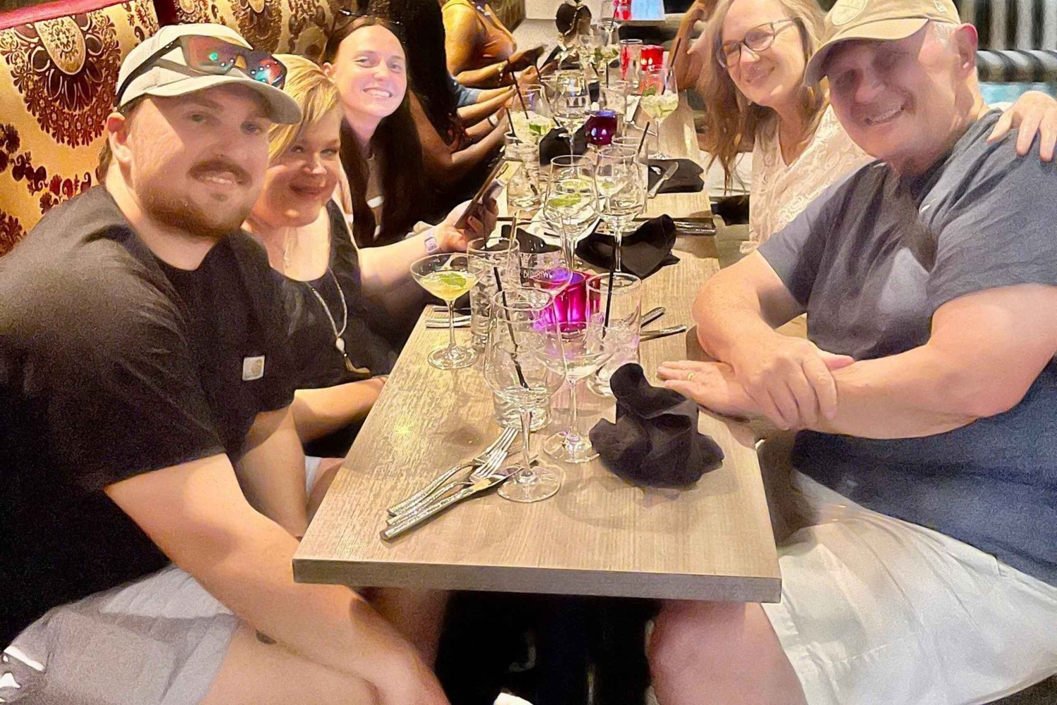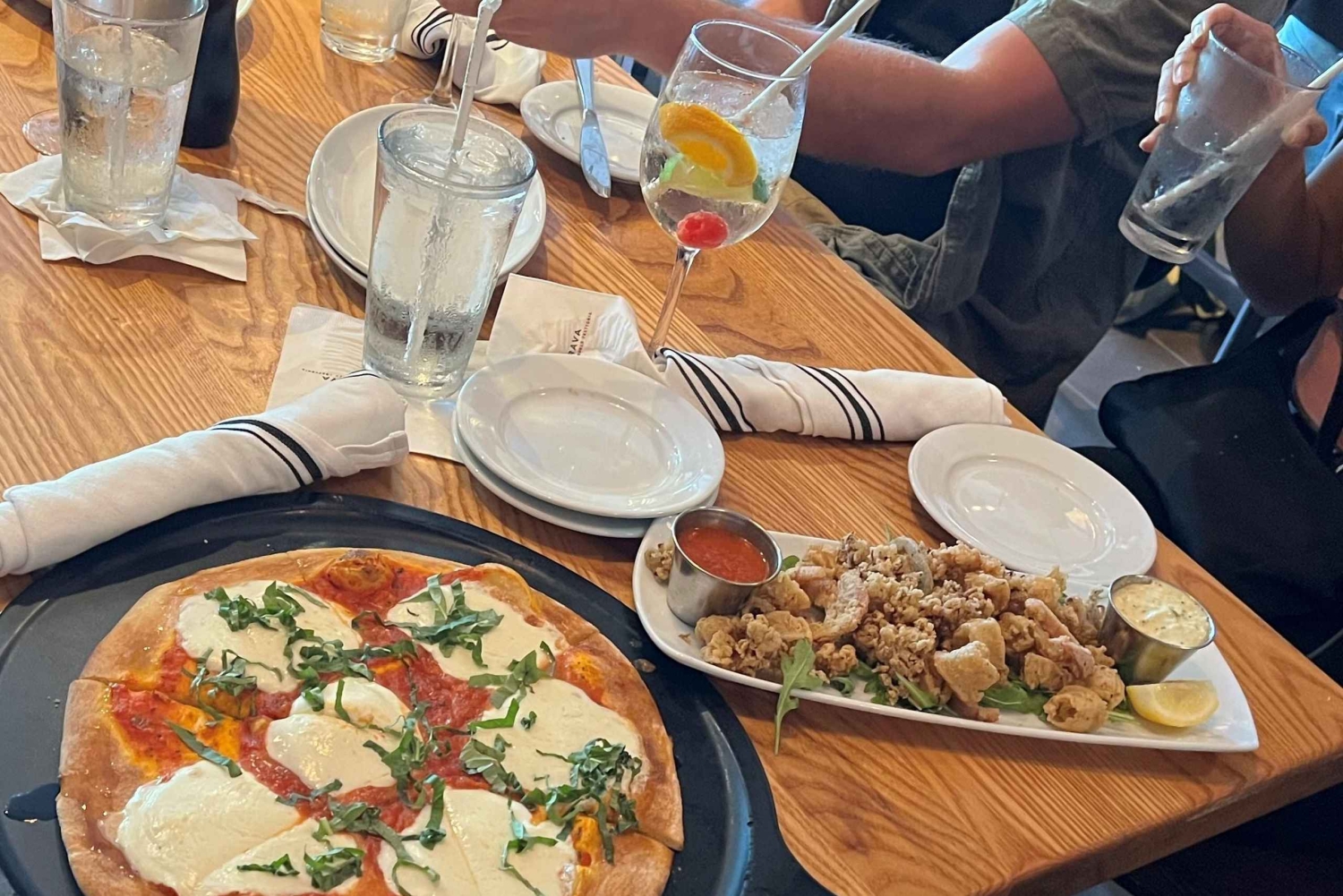 Experimenta el encanto del paseo marítimo del centro de St. Pete en este tour a pie de comida y vino de 3 horas. Comienza con un festín italiano y una refrescante sangría en Bella Brava antes de explorar el emblemático muelle de St. Pete y su rica historia. Al ponerse el sol, saborea un cóctel y bocados ligeros en Fresco's Waterfront Bistro. A continuación, disfruta de un pintoresco paseo por Beach Drive a través de Vinoy Park hasta el histórico Hotel Vinoy, donde descubrirás la fascinante historia que se esconde tras este hito histórico. La velada concluye en un ambiente cálido y acogedor con una tabla de embutidos en Dracula's Legacy, un favorito local, y un dulce final de chocolate local. Ten en cuenta que se trata de un tour a pie moderado, de 3 horas de duración, y que no podemos acoger a personas discapacitadas.Includes